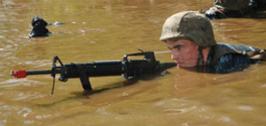 海兵隊のは泥水の中ひたすら時間がかかる耐久匍匐前進